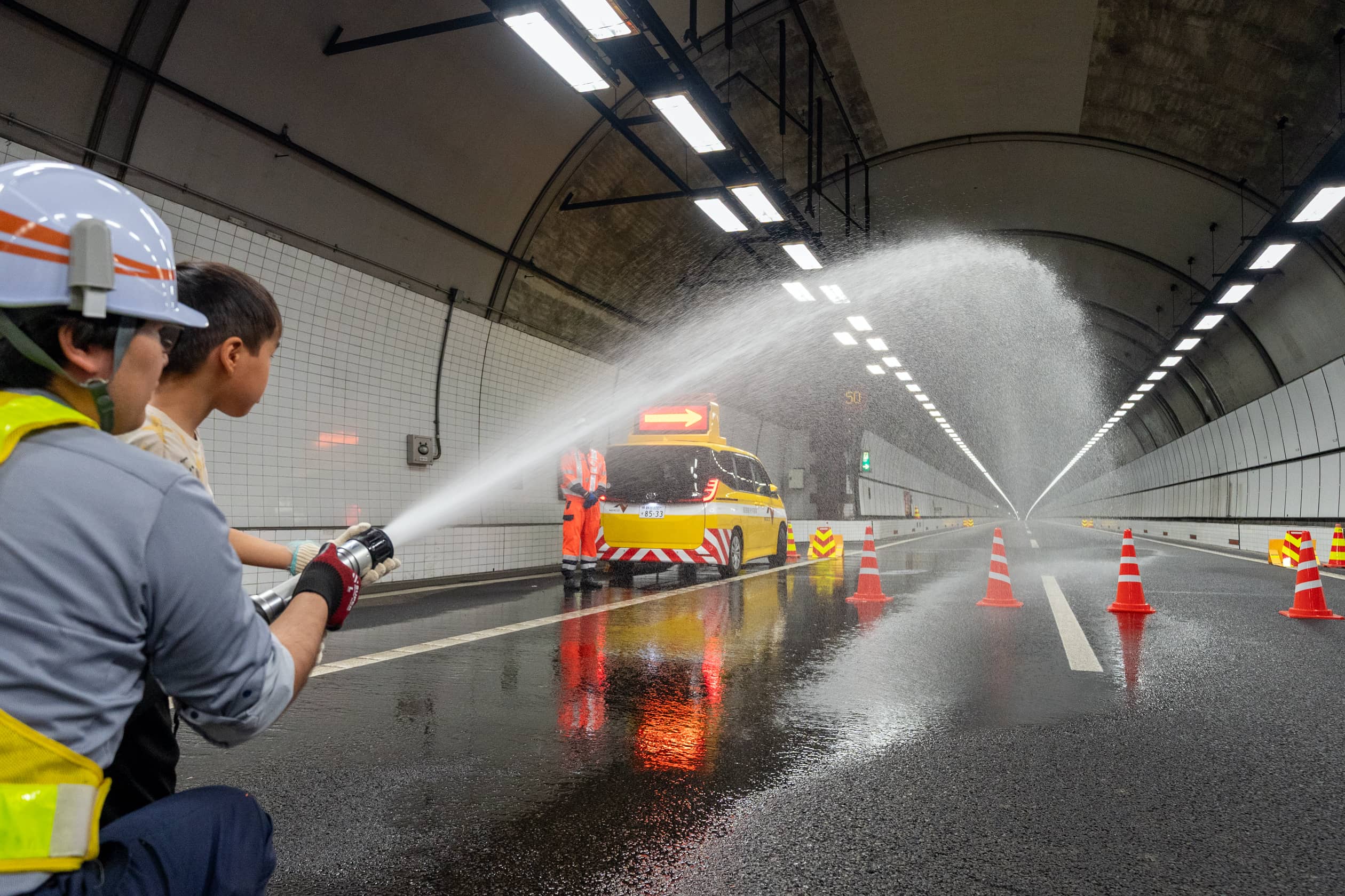 1979年7月11日、日本坂トンネルで追突事故により火災が生じ7人が死亡、173台の車両が焼失する事故が発生しました。トンネルにおける防災設備の不備が指摘されました。いつ起こるかわからない事故に備えるための貴重な体験の場として、今回のイベントは大きな意義がありました。