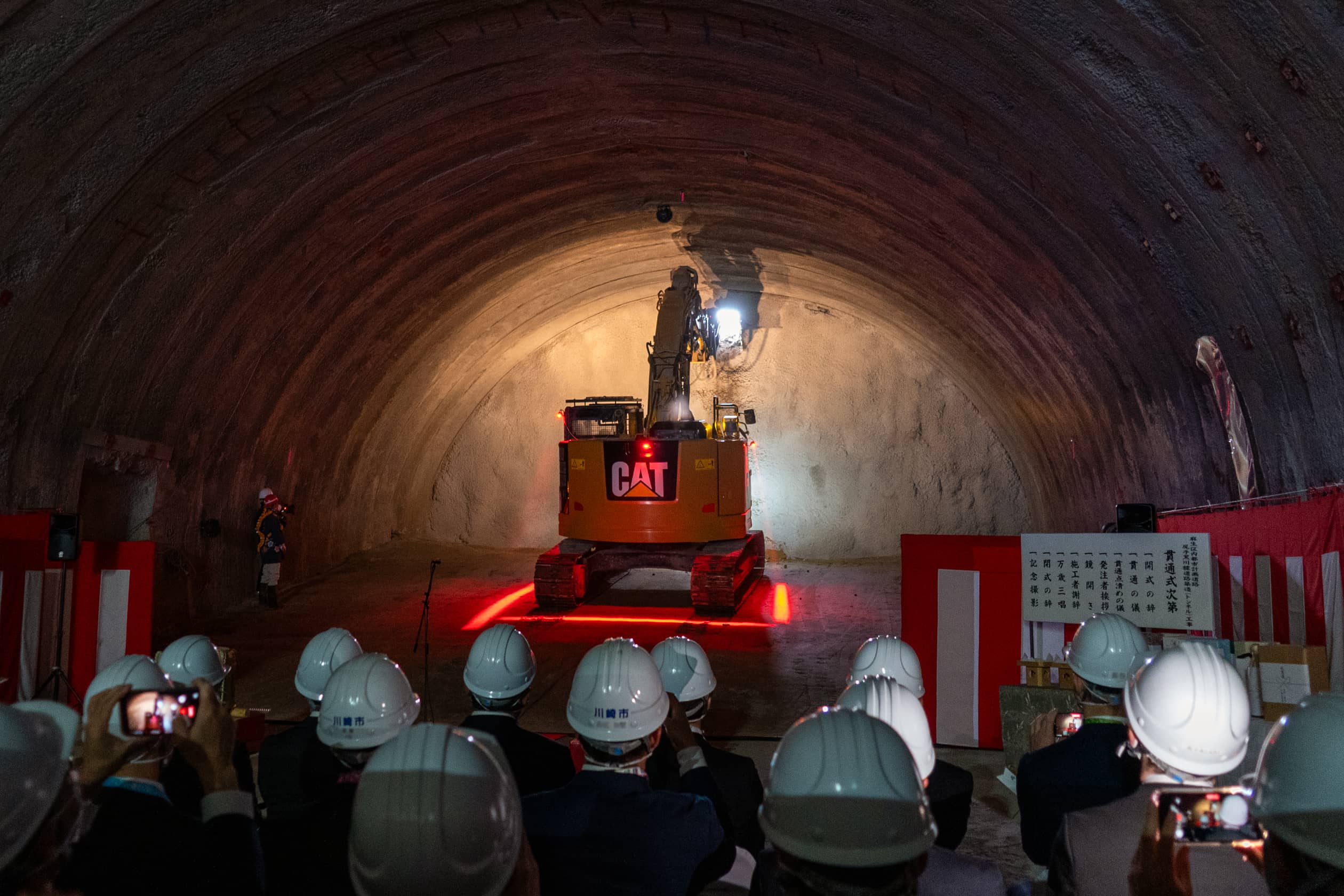 貫通式で、川崎市の河合征生建設緑政局長は「市街地で地質条件も厳しく難しい工事だったが、施工者の尽力により貫通を迎えることができた」と挨拶しました。西松建設の宗澤敦郎関東土木支社長は「振動や騒音、想定外の地質、湧水など、さまざまな課題を乗り越えて無事に貫通できた。今後のインバート工事や覆工についても、最後まで安全管理を徹底して取り組んでいく」と述べました。